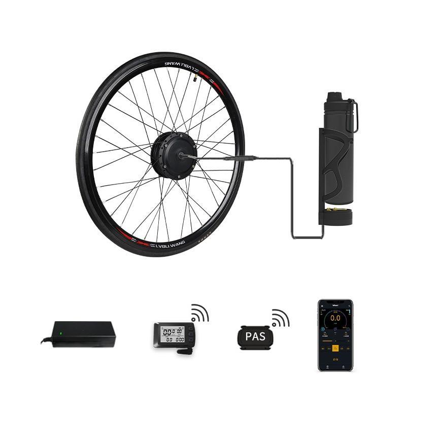 综合骑友需求以及国内市场,吕布云轮推出高性价比3分钟智能助力改装套件——KF系列,套件很精简,包括电机轮、水壶电池、支架控制器、充电器和安装工具。安装只要更换前轮,安装支架控制器,插上水壶电池即可,全程只要3分钟,对动手能力较弱的骑友很友好。改装后,不仔细看,根本看不出是一辆电助力车,与普通自行车外观基本一致。套件适配度高,提供16吋、20吋、24吋、26吋、27.5吋、29吋、700C等多种规格的车圈,市面上大多数型号的自行车都可以改装。