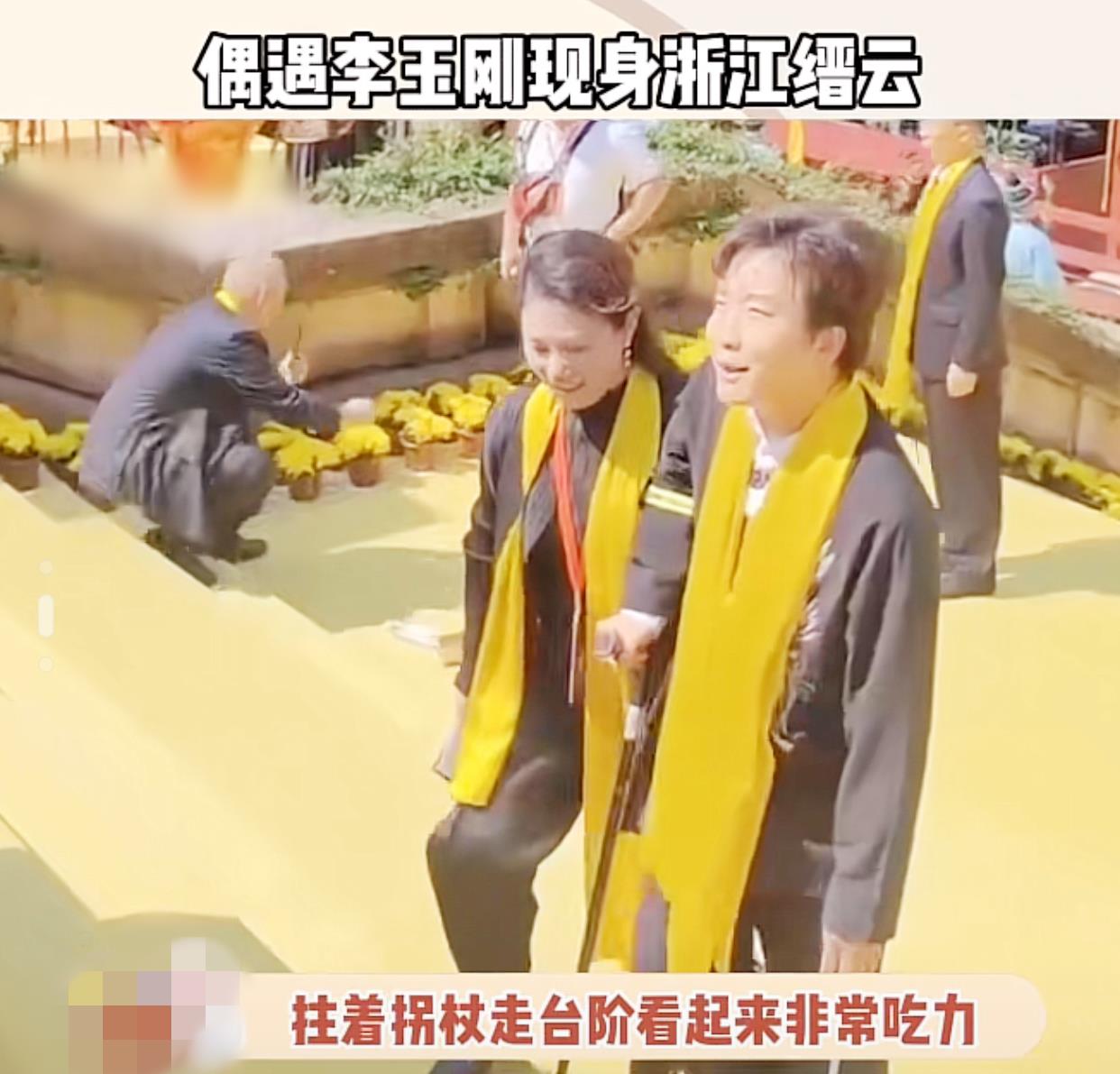 如果没有工作人员的帮忙,李玉刚连这几步台阶似乎都登不上去。