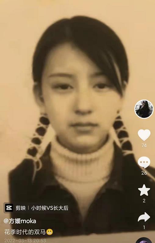 方媛罕见公开花季时代美照,扎双辫全素颜清纯可人,被赞天然美女