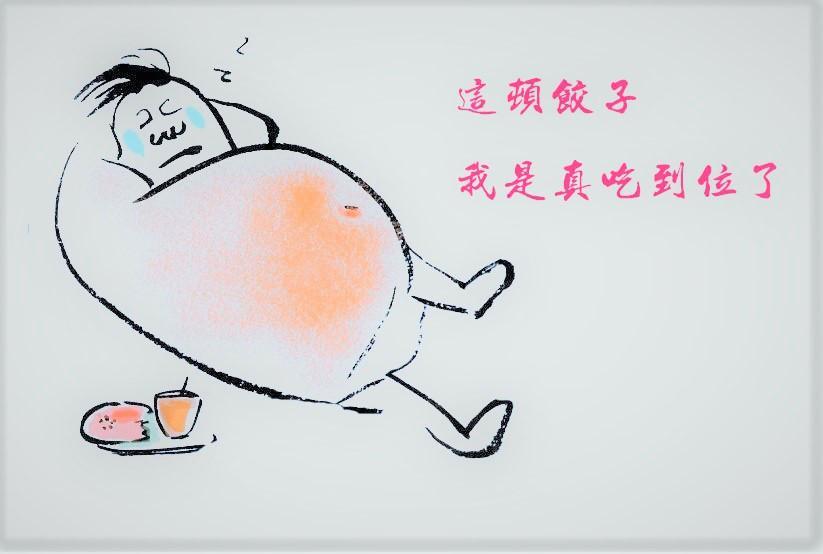 自己扛着个大肚子,步履蹒跚往回走!这一颠簸,就又吐出个饺子,用脚踩了踩,叹到:早知道是肉馅的,该多吃几个!
