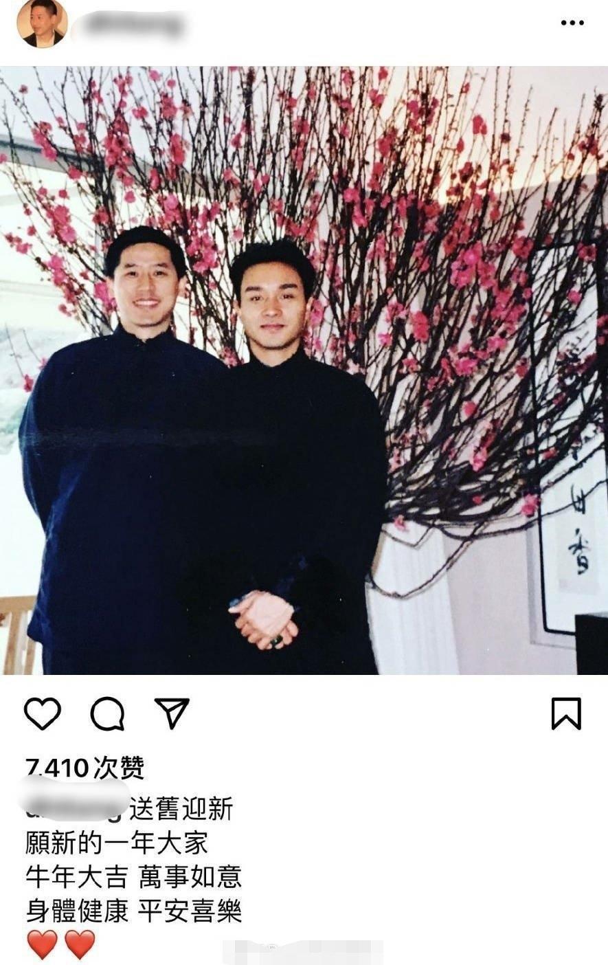 唐鹤德晒出与张国荣的旧照,祝大家新年快乐,两人同框笑容满面