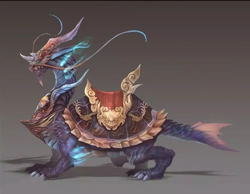 由以上我们可以得出:再古代蛇与龙是一体的,蛇既是龙,龙既是蛇。又因为有“龙,介虫之长;麟,毛虫之长;凤,羽虫之长;龟,介虫之长。”所以在民间蛇与龟的结合,常被龙与龟的结合替代。由此可以得出:龙龟由最初的龟状(玄武)演变为龙头龟状,这也是民间流传很广的玄武形象。