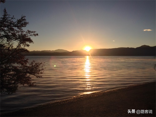 她像一个古朴、宁静的睡美人,躺在青山环绕的怀抱之中,又像造物主藏在这里的一块硕大的蓝宝石,一面光彩照人的天镜。湖周长约五十公里,在湖的北岸,屹立着一座秀丽的“格姆”山,意思是女山。摩梭人把她视为女神化身。从南边远远隔湖望去格姆女山又像一头昂首而卧的狮子,人们又叫它为狮子山。