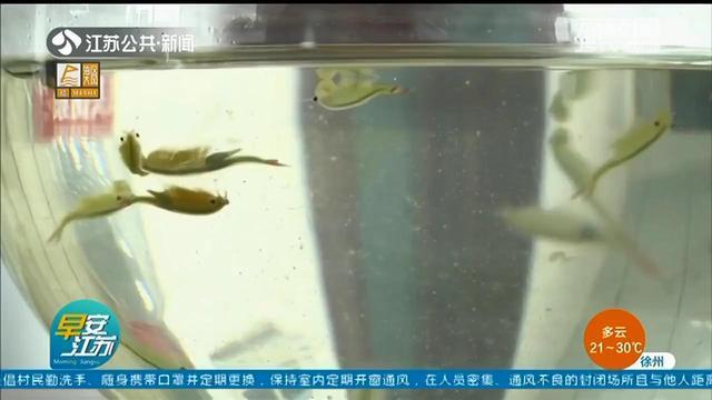 江苏省连云港市东海县水晶公园,有居民在一个池塘内发现了一种奇特的小动物,长着红色的尾巴,非常好看。据专家介绍,这种小动物叫“仙女虾”,像虾但不是虾,属于无甲目钗额虫科,光凭这些名字就能看出它的样子很优美,就像仙女一样。