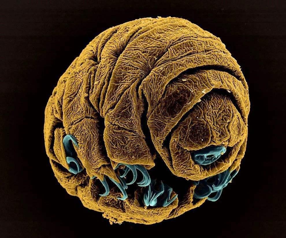 水熊的适应能力可谓超强,分布在世界各地,包括北极、热带、深海和温泉等恶劣环境,既能承受高温,也能忍受严寒!这是由于水熊在发现环境恶化时,身体会缩成圆桶状,并自动脱水,将含水量降到3%,进入一种”隐生状态“。实验证明,把这种状态下的水熊放到零上150℃和零下200℃的极端温度下,仍然不会死亡。等恢复到常温后,再给它补充水分,水熊便能再活过来。