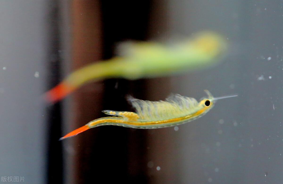 仙女虾是小型淡水甲壳类动物,其实是300多种水生动物的统称,长相差不多,以枝额虫为代表。它的色彩艳丽,形态优美,喜欢“仰泳”,像是一条小鱼或小虾。它的身体呈浅黄色或浅绿色,两只黑色的复眼突出在头部两侧,分叉的尾巴又是红色的,腹部还有10多对脚。由于样子好看,仙女虾又被称为“丰年虾”或“丰年虫”。