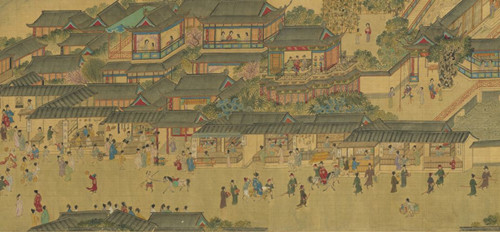 《清明上河图》是明代画家仇英创作的一幅重彩风俗画作品,现收藏于辽宁省博物馆。存世作品《清明上河图》有多本传为仇英所作。