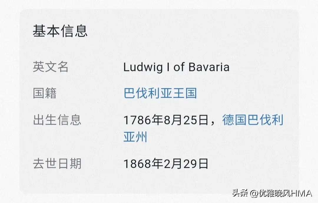 路德维希一世于1868年2月29日在法国尼斯去世,终年81岁。