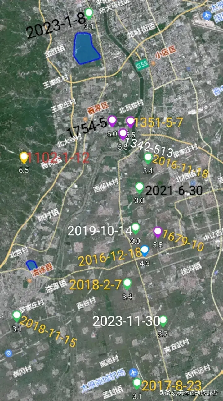 太原盆地在地震历史活动上都是小震频度高而强度高的活动频度不高的。2023年11月30日在太原清徐县发生了一次3.7级地震是今年以来太原市发生的第二次3级以上地震活动,上一次发生在2023年1月8日太原市晋源区3.1级。