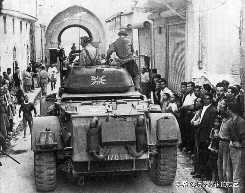 1945年英法在叙利亚发生了直接冲突,英军装甲车在大马士革街头