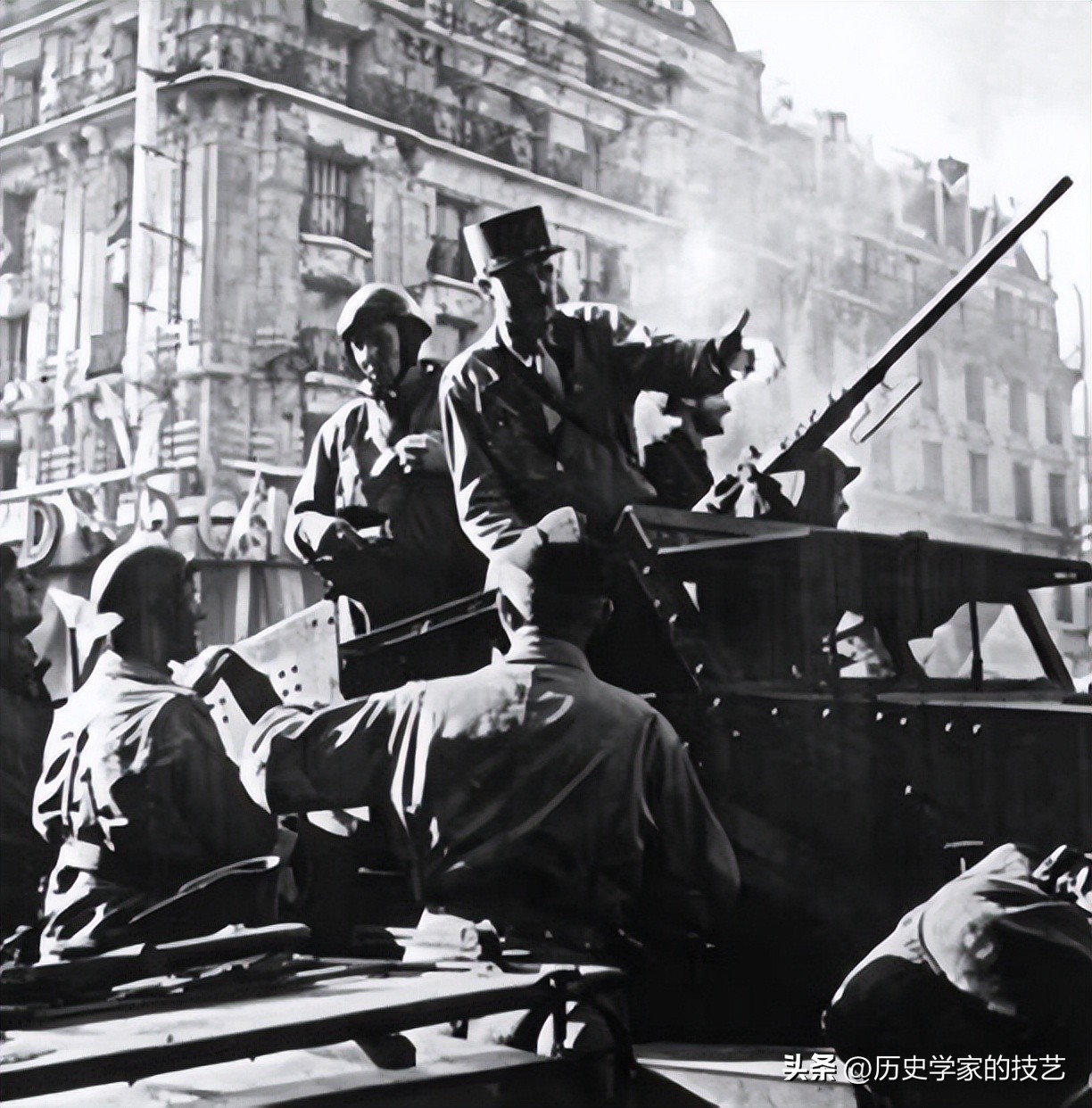 武装起来的巴黎市民脸上洋溢着笑意,他们即将迎来解放