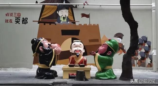放眼望去,几乎沿街每个店铺内,都错落有致地摆放着带有三国元素的纸扇、雕像、书籍等等商品,整个街道都充斥着极其浓厚的历史人文气息。
