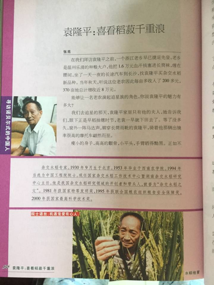 当年,采访结束后,张亮撰写了《袁隆平:喜看稻菽千重浪》一文,发表在钱江晚报上。而根据“约会院士”大型系列报道内容为基底出版的《走进中国100个院士的家》一书,亦刊载了此文。