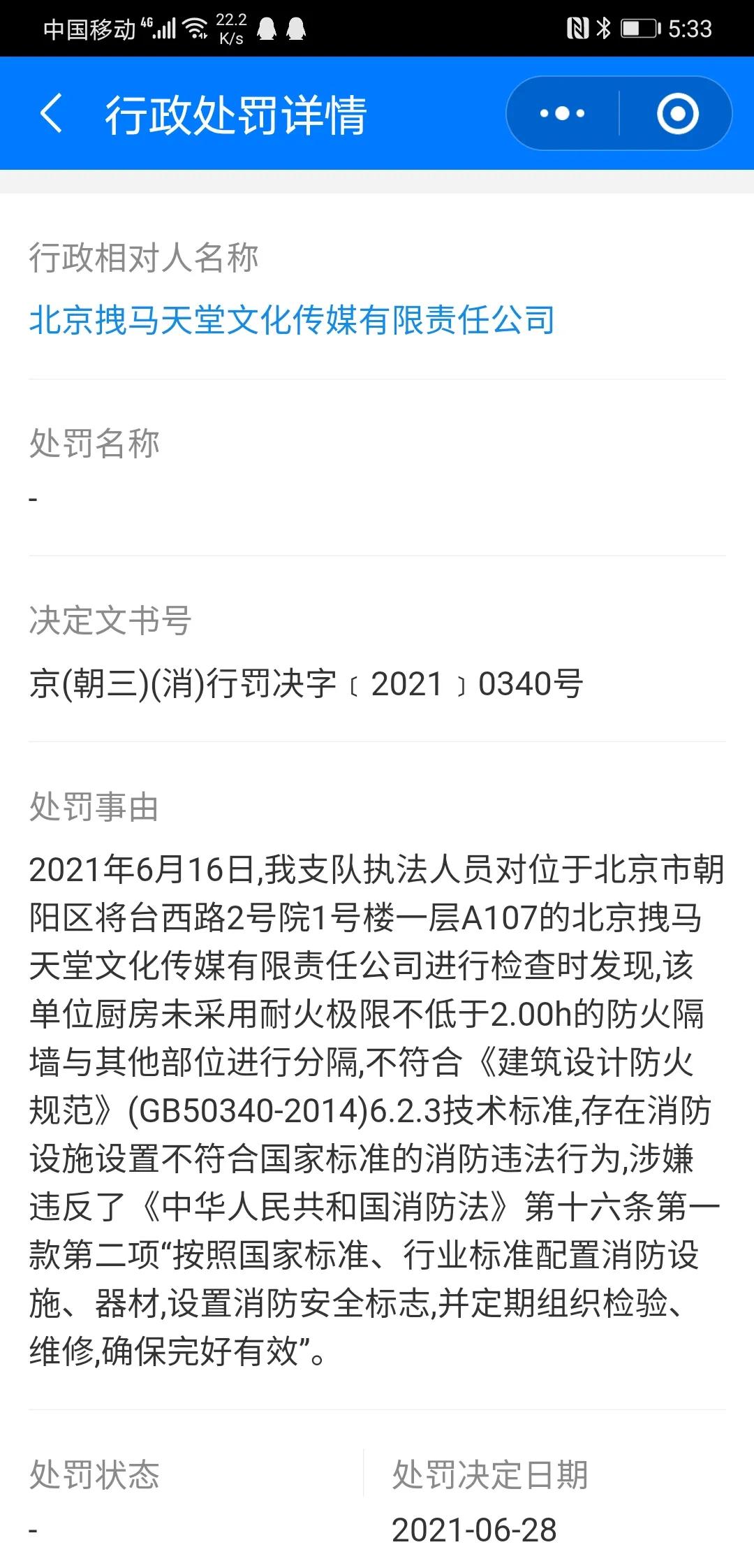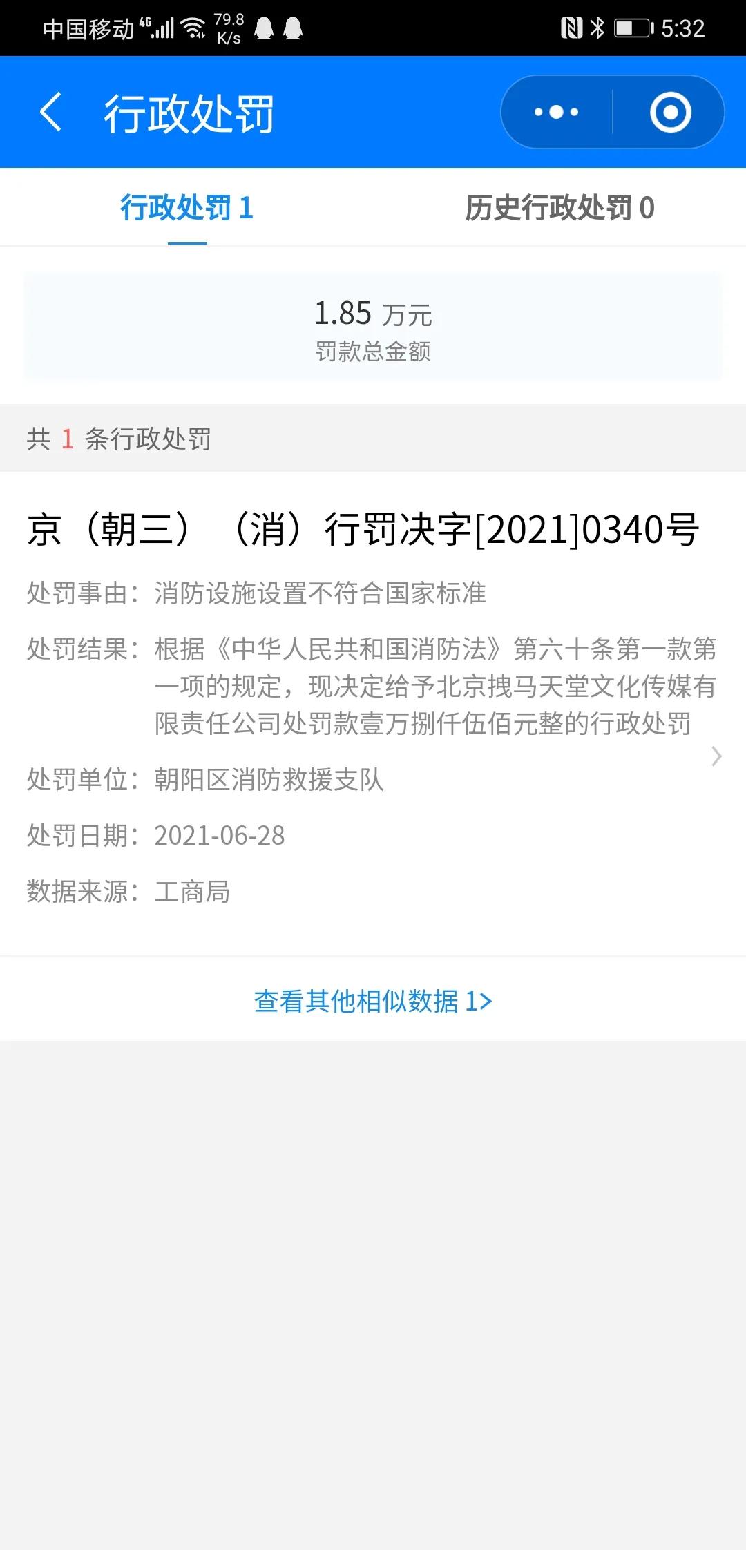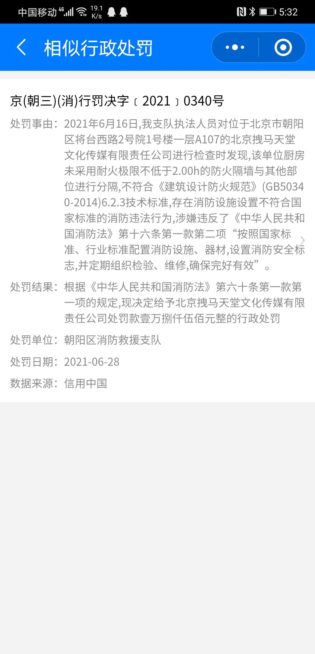 最近网友在企查查发现,赵立新所在的北京拽马天堂文化传媒有限公司遭到行政处罚!