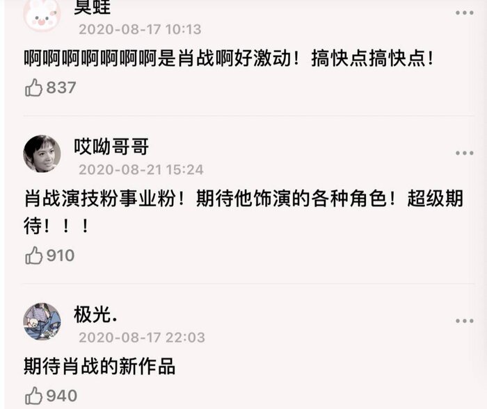 短短三年时间,肖战便从一个秀人成为一线男演员。