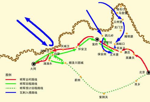 正统十四年(1449年)六月,瓦剌的也先入侵大明边境,这让身为皇帝的明英宗大为震怒。在宦官王振的蛊惑下,王振也学着老祖宗御驾亲征,结果在土木堡被人家一锅烩了,就连他自己也被俘虏了。这就是大明的耻辱土木之变。