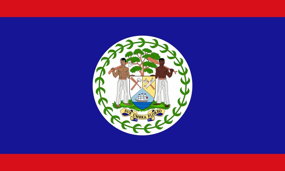 两条红色条纹代表着伯利兹的独立与自主。海蓝底色代表着加勒比海与其对伯利兹的密不可分的关系。旗中央的圆形白底盾牌象征着和平。盾牌上镶有伯利兹的国徽。伯利兹国旗上使用着12种不同的颜色,这是代表国家政府的旗帜中颜色最多的。