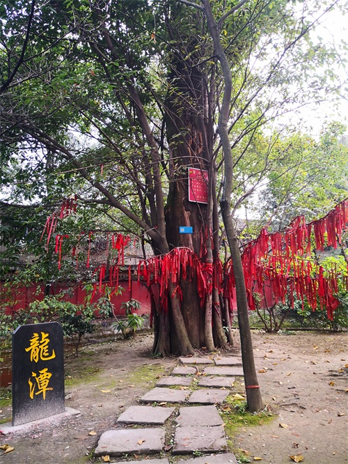 千年古井水自出:据传,龙潭寺内的古井,直径两米左右,颇有神奇之处。人们都说此井与皇城的护城河相通,每逢锦江涨水,此井必有泉水冒出。此井在康熙《成都府志》有记载:“龙潭寺华阳治东,寺内有古八角井”。