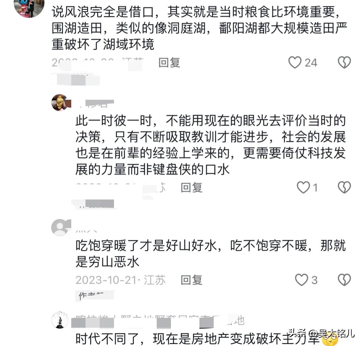 围湖造田确实造成了一定的生态破坏,每年夏天的蓝藻爆发确实令人头疼不已,但时代在进步,不就是在不断纠正过去的错误吗,一边前进,一边改正!