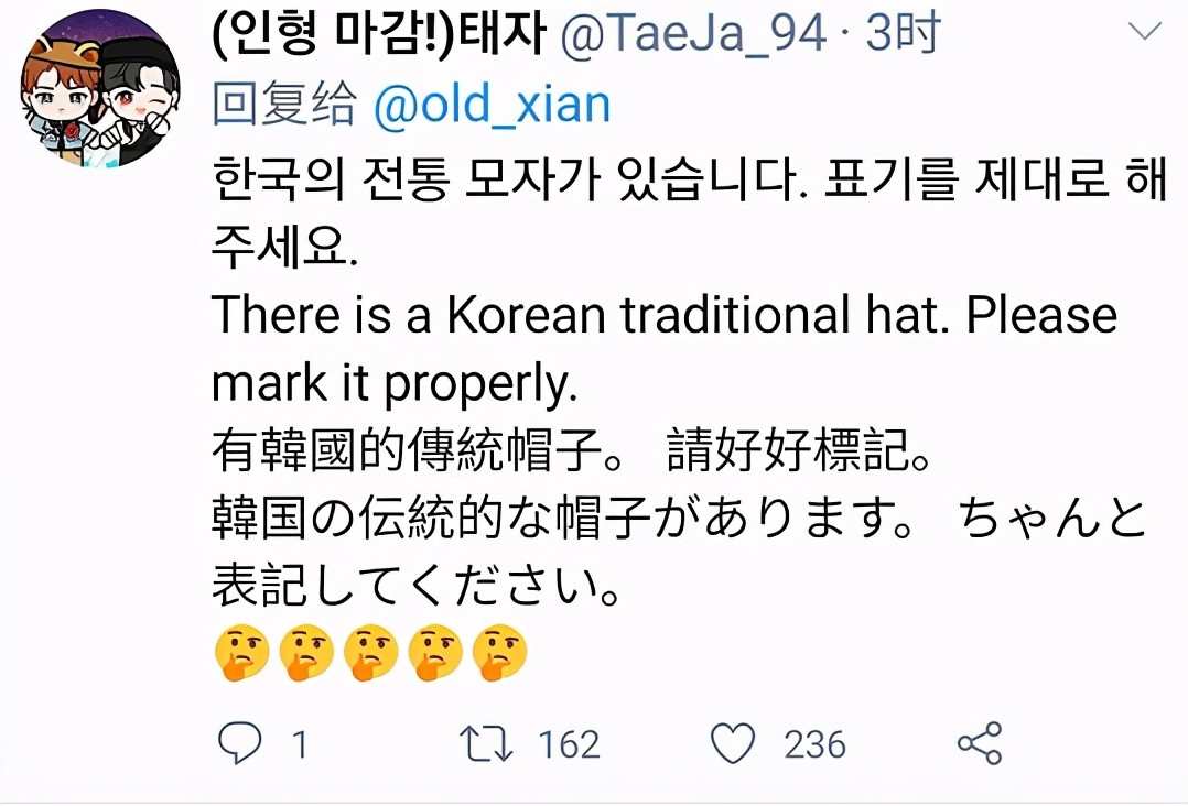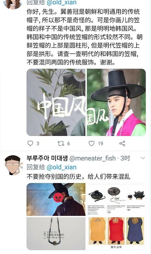 对此,先后有多名网友用几张照片对其进行了质疑,有一名网友甚至言辞激烈地称这种行为是抢夺别人的历史,还有不少网友直言有韩国传统帽子的要好好标记,在尚未和画师本人沟通,尚未有明确证据的前提之下,就对别人的画作指手画脚,大放厥词的行为一时间引起了不少网友的强烈反对。