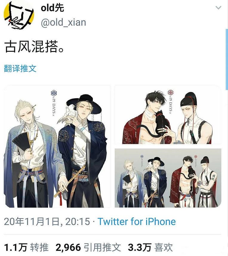 11月1日,画师old仙将画的一幅四人的古风服饰图上传到了推特上,获得了大量粉丝支持的同时,也引来了几名韩国网友的质疑。