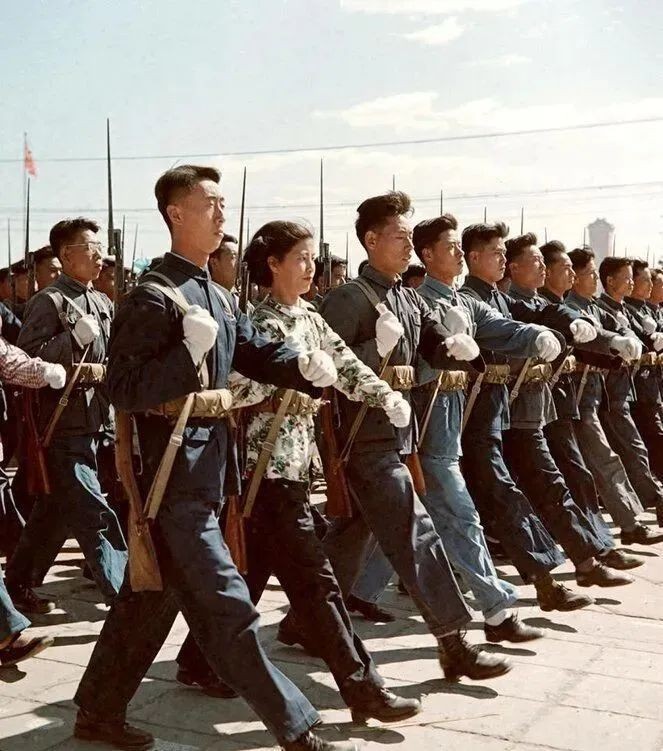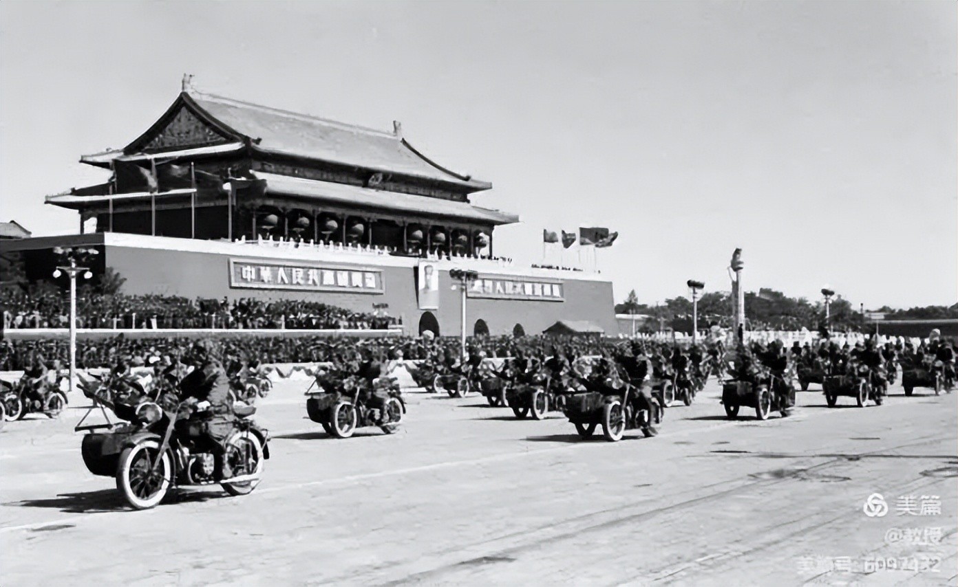 这一年国庆节庆祝活动,钢铁工业、交通汽车和“首都民兵师”首次亮相,伴随着“生产1070万吨钢”这一奋斗目标的实现,新中国的国防力量将越来越强大!