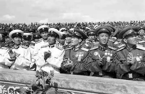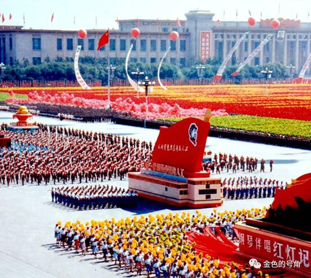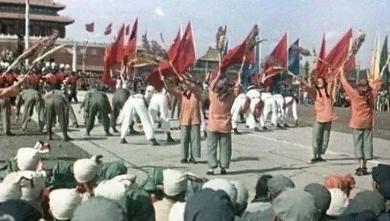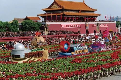 这一年国庆的庆祝活动,伞兵部队、火箭炮部队、防空兵部队等崭新兵种,第一次闪亮登场、接受检阅,整齐划一的服装更显精神,老百姓的脸上喜气洋洋。