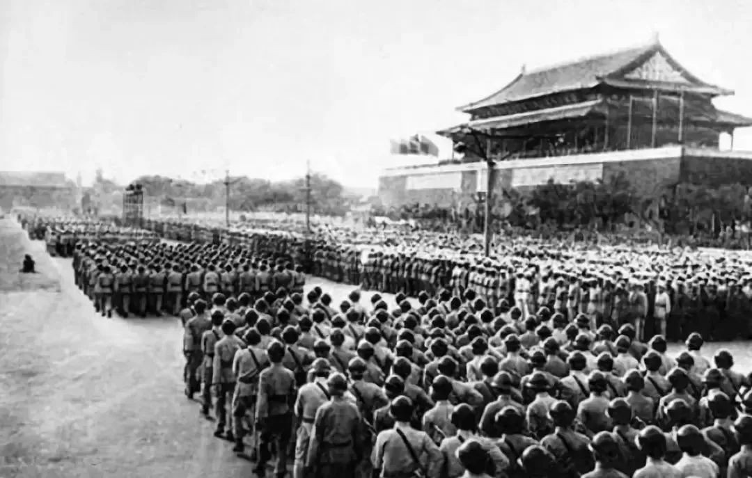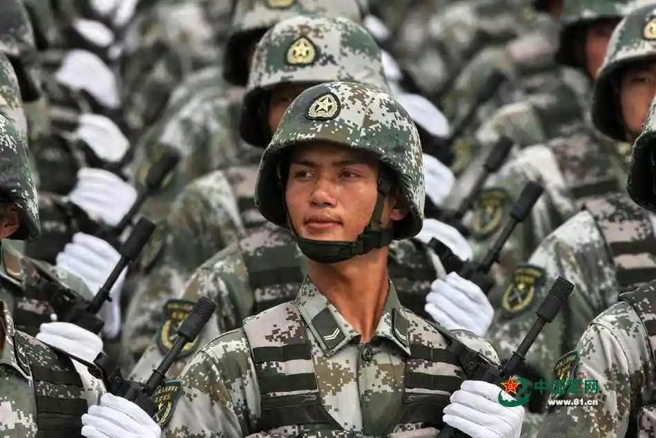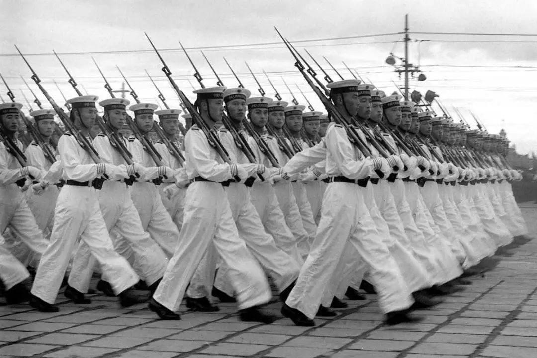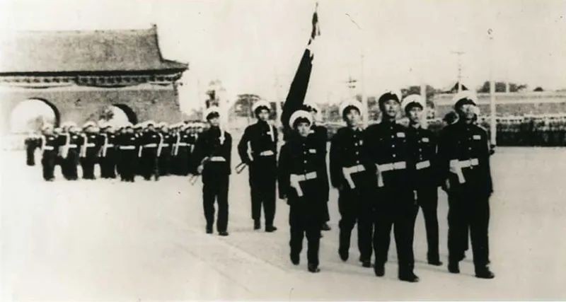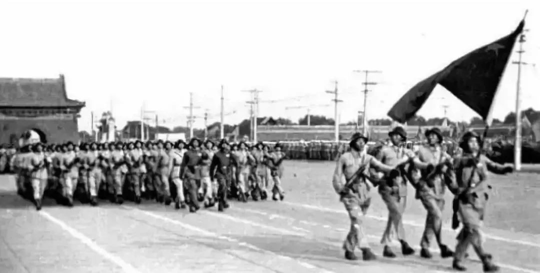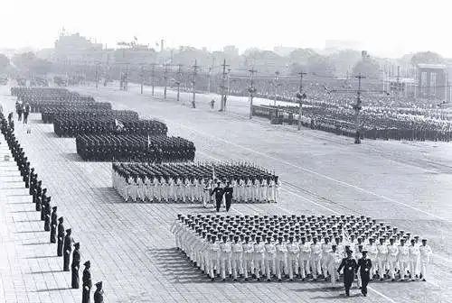 此次是人民解放军实行军衔后首次参与阅兵,身着新式军装的解放军英姿勃发,队伍严整,标志着军队正规化建设进入一个新的发展阶段。