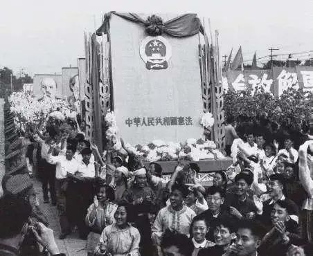 这年国庆节,我军骑兵部队最后一次接受检阅,空军飞行学员们首次参阅通过天安门,游行群众抬着中华人民共和国宪法模型,欢呼国家从此有了根本大法。