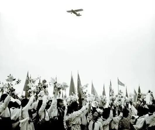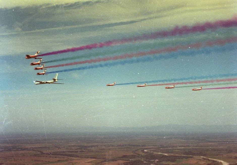 “有朋自远方来,不亦悦乎!” 1957年国庆的庆祝活动,是新中国来宾最多的一次,国产歼-5喷气式歼击机也首次亮相,群众游行方阵和人数也前所未有地增多。