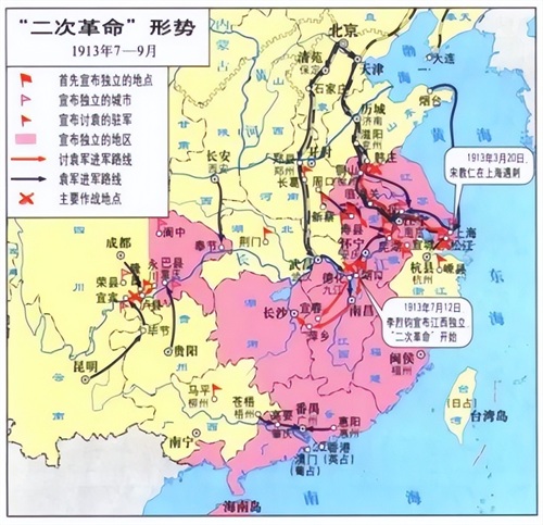 过程。1913年7月,孙中山组织发动了讨袁的“二次革命”,但国民党涣散,很快失败。