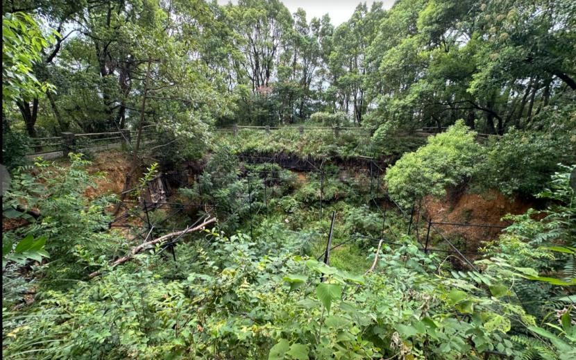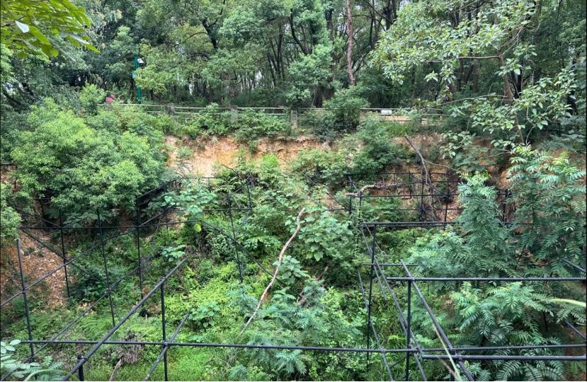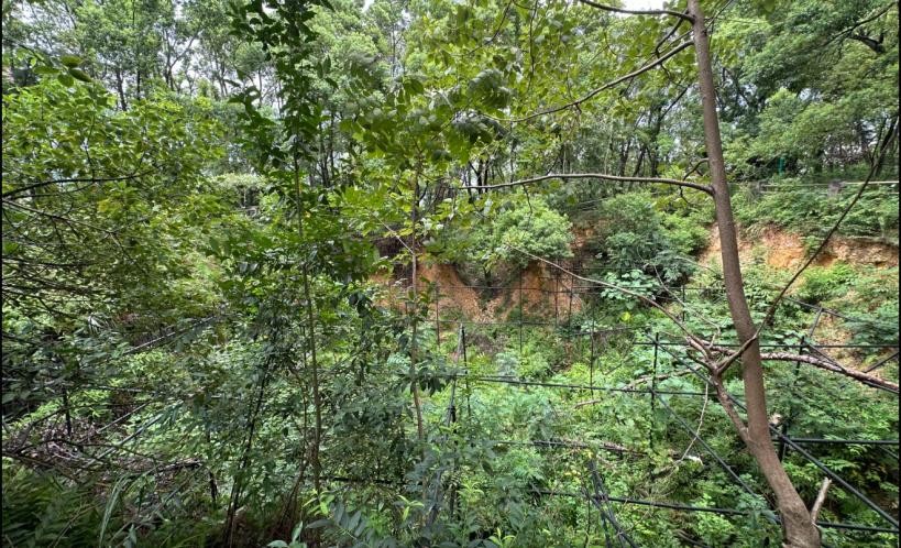 象鼻山不高,海拔仅67.7米,拾阶而上,很快就到达了山顶,登上山顶,远远看见一处被围栏围起的深坑,这里就是当年发现长沙王墓冢的地方。