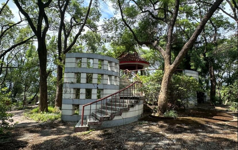 扇形山顶,有一座螺旋亭: