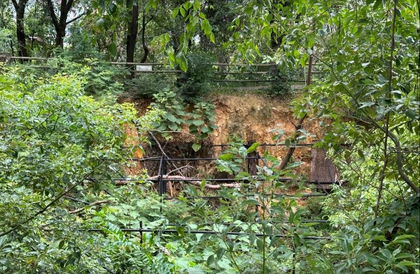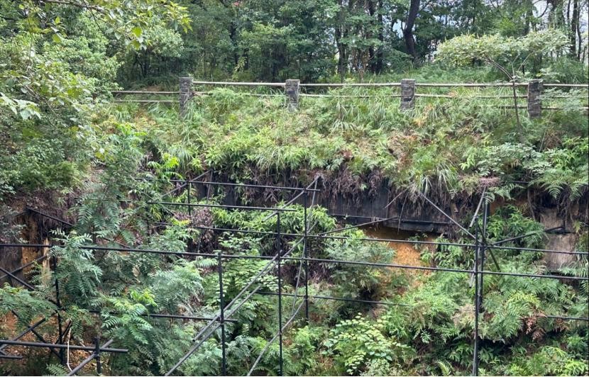 我环绕深坑一周,找到了当年的墓道口,这里已经被上了锁,虽然不能进去,但也基本看到里面的样子。