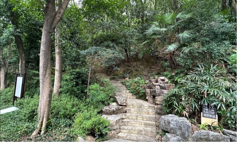 无心欣赏风景,一路直奔主题,步行约一百多米,看到“长沙国王陵墓群-象鼻山墓区”标志,旁边就是登山口,沿此处到山顶就是长沙王吴著的陵墓所在。