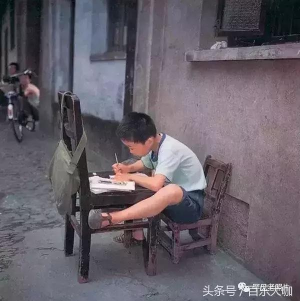 1983年,上海,放学后摆一把椅子在弄堂里写作业。秋山亮二/摄。