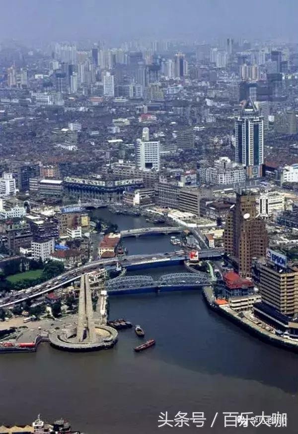 1998年,上海,从东方明珠俯瞰黄浦江与苏州河口。
