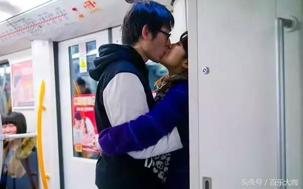 2015年,上海地铁,一对情侣旁若无人激情狂吻,毫无顾忌。