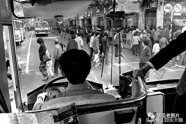 1980年代,上海北京东路,42路和48路终点站候车队伍。