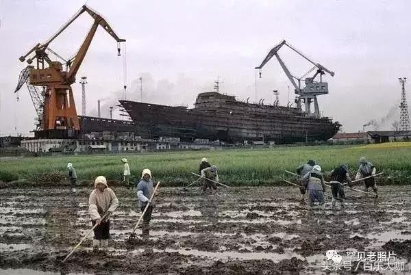 1980年,上海,稻田附近的沪东造船厂。布鲁诺·巴贝/摄。