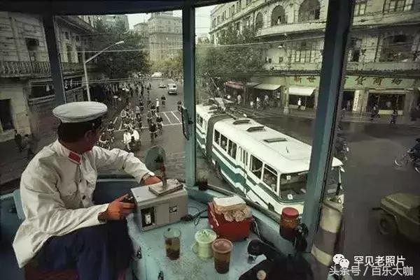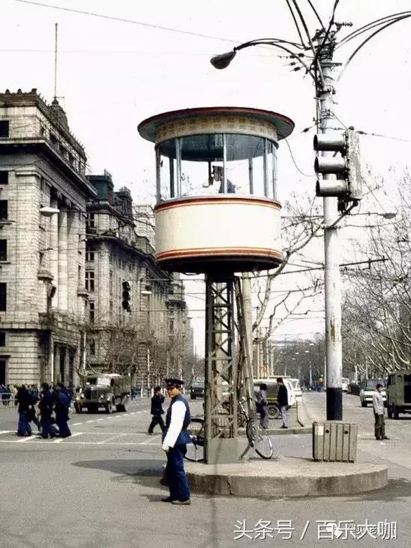 1980年代,上海,交通岗亭内,手动控制信号灯。