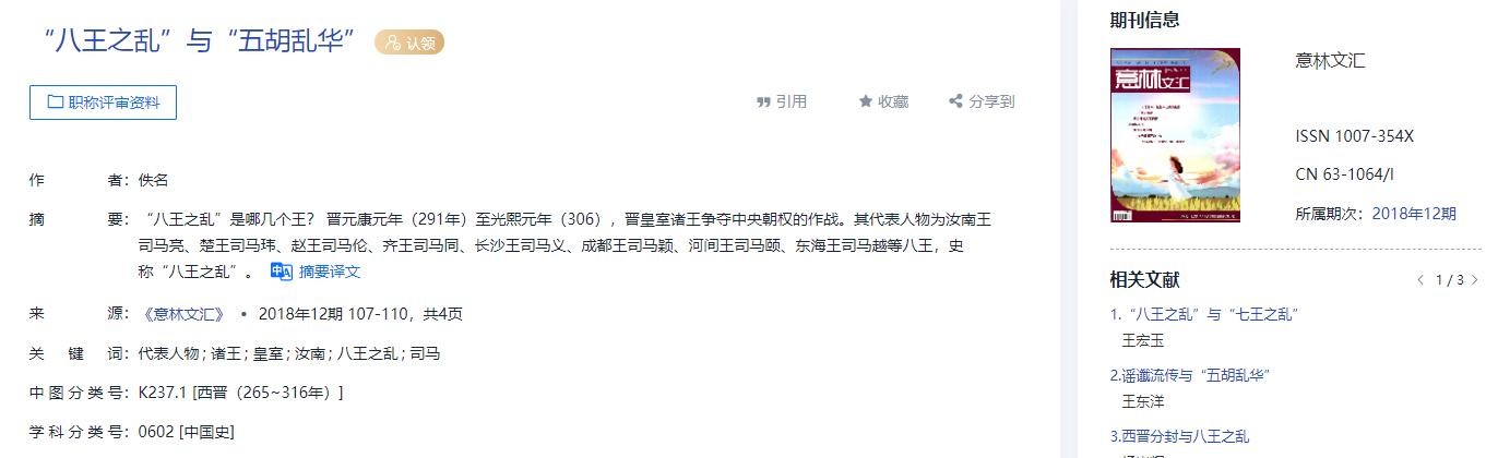 [2]佚名.“八王之乱”与“五胡乱华”[J].意林文汇,2018,(12):107-110.