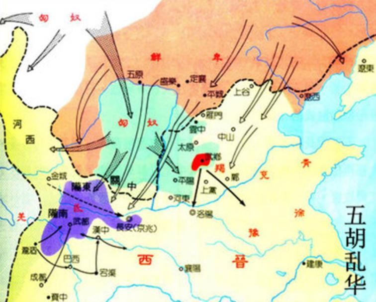 随着中原地区汉族人口的不断锐减,北方及西部的少数民族“趁虚而入”大举入侵,很快便占据了长江以北的神州大地,史称“五胡乱华”。