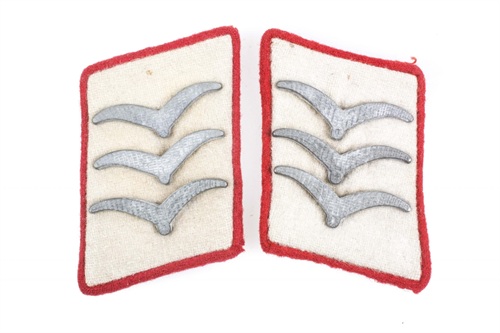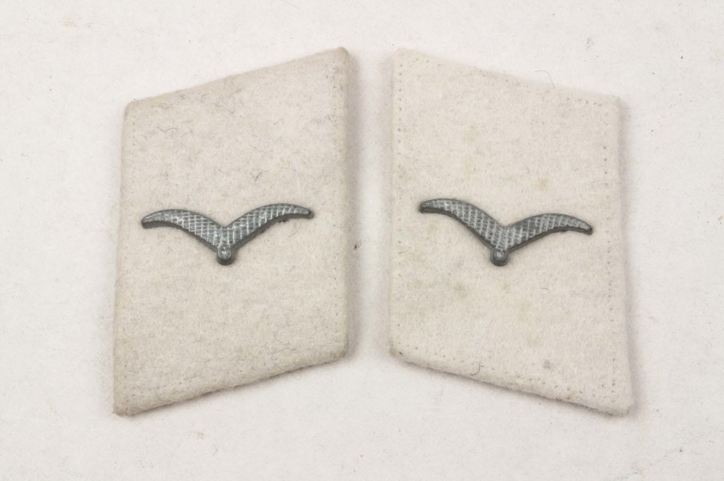 这件空军下士的黑色装甲兵制服的领章比较少见,没有使用白色底,还是黑色底加粉色滚边。