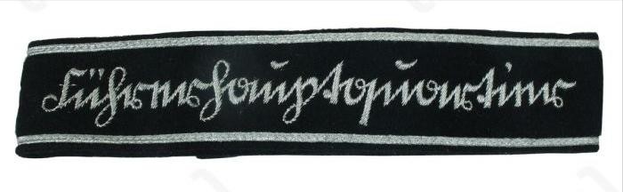 ●“Fuhrerhauptquartier”,分配到元首总部(Fuhrerhauptquartier)和元首专列的防空炮兵可以佩戴白色字体的黑色袖标。