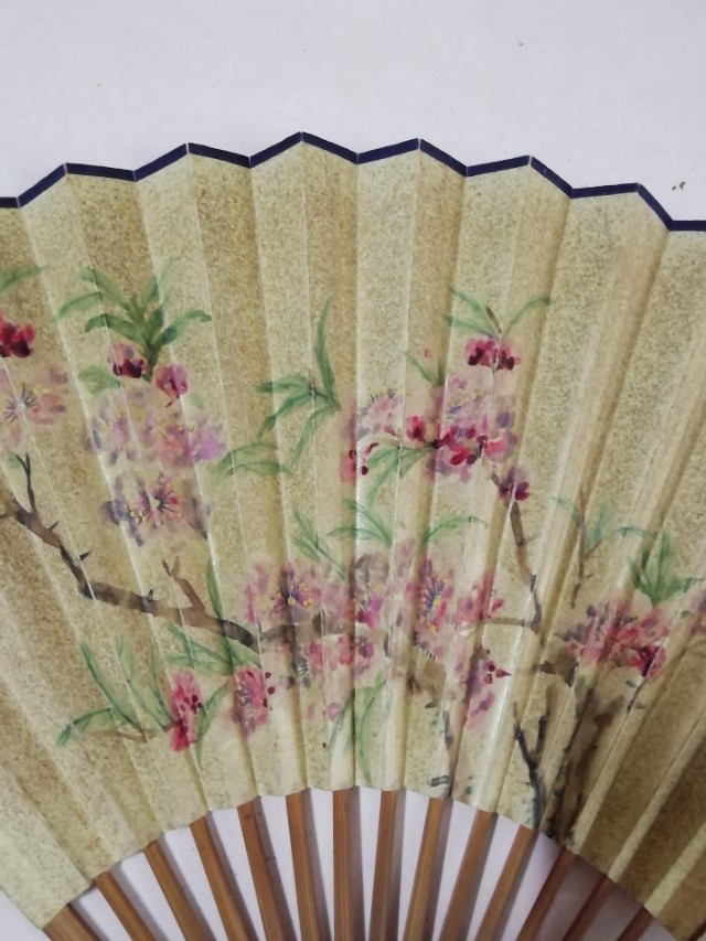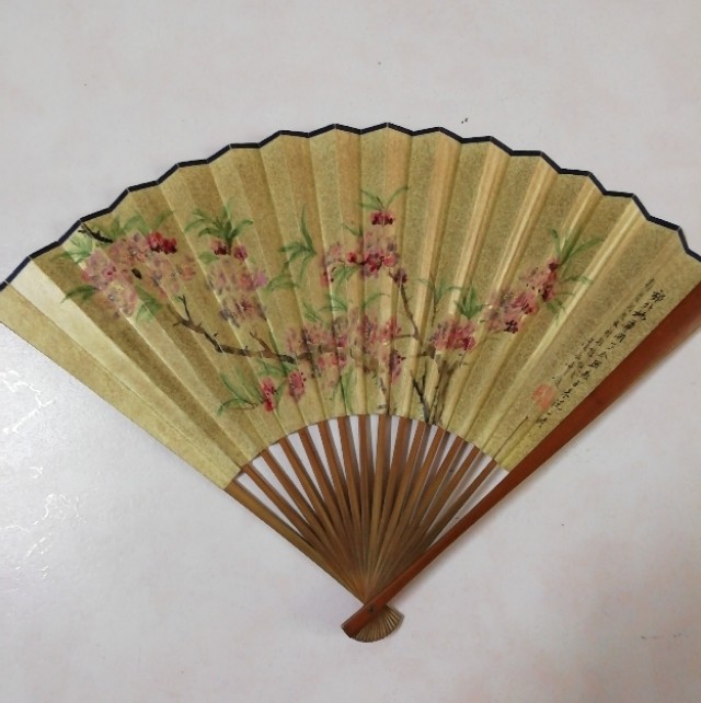 事出巧合,在我所藏的折扇中,有一把是陈实铭的书法,另一面是著名画家黄道敏画的桃花。在古今书画中以单独桃花为题材的作品并不多见,黄道敏的画意突出了桃花之豪放,加以陈实铭的内在诗句,可见桃花与陈家的历史渊源。