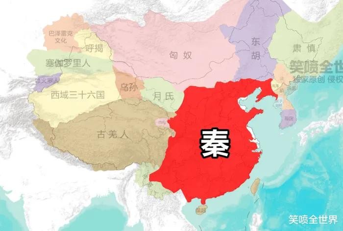 因为秦朝即使是版图最大时期也没有今天大,所以我们先看一下周边还有哪些小国势力。其中西藏青海地区以及四川西部大部分属古羌人,新疆则是西域各小国,北方蒙古大部为匈奴领地,东北地区则有东胡、肃慎以及朝鲜半岛上的各方势力。