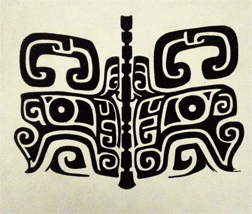 饕饕纹纹样所用的既对称面又整合的形式,突出表现的是-种神秘威吓中的恐怖、恐惧、残酷的狠感,这些主要是为了服从于祭祀的要求,从而达到精神的统治。用“狰狞恐怖”来表达王权的“神秘威严”。