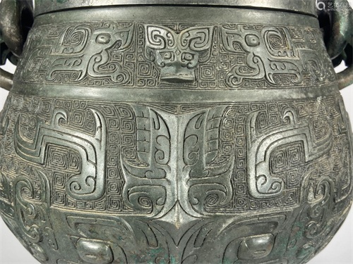 西周饕餮纹提梁卣-正面