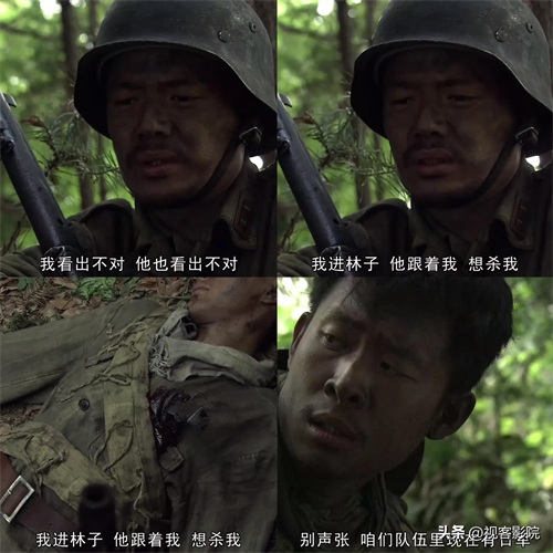而歌声之中龙文章独自走向树林,并发现了一个很奇怪的现象,不一会从树林传来了几句话,孟烦了走到了树林,死啦死啦目光呆滞地看着树后,孟烦了过去看着龙文章看的东西:一个已经死了的中国兵靠在树干上,刺刀扎在他胸口,血还在流,正是龙文章拉倒队列里无计其数溃兵中的一个。